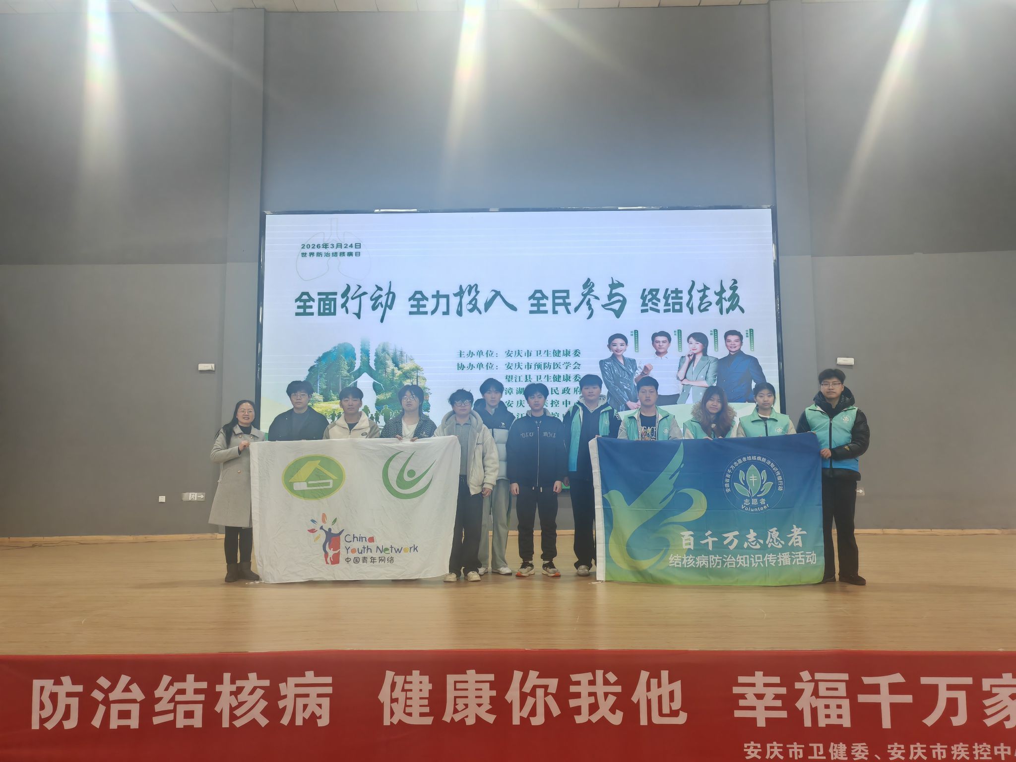 3月23日上午,由安庆市卫健委主办、市疾控中心承办的“世界防治结核病日”集中宣传活动在望江县漳湖镇回民村举行。我校大学生健康之家协会志愿者积极参与,以“文艺+科普”的创新形式,为基层群众送去健康知识。