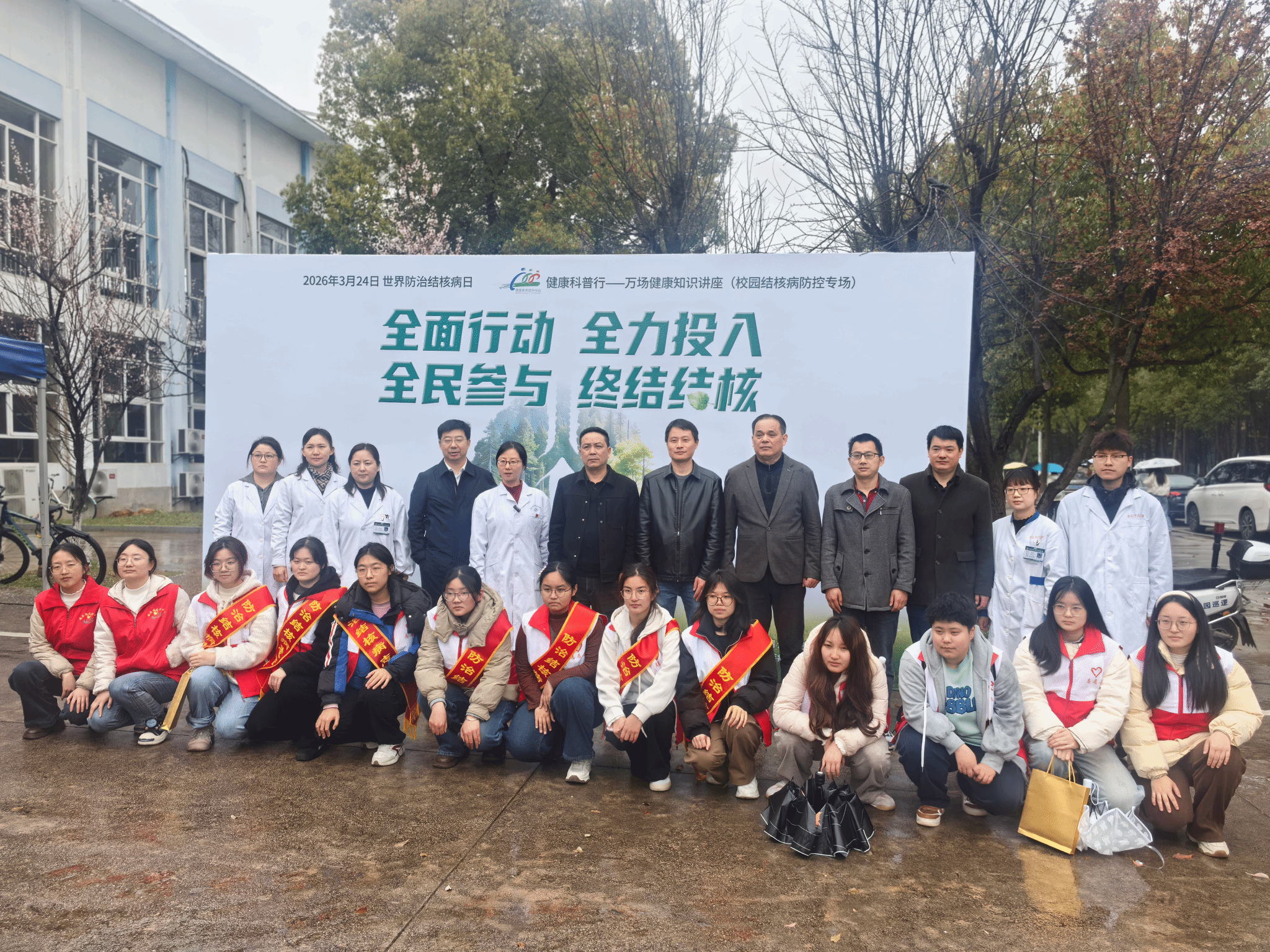 黄旭在致辞中充分肯定了我校结核病防控工作的成效,希望师生牢固树立“每个人是自己健康第一责任人”的意识,共同筑牢校园健康防线。曹必宏在讲话中表示,校医院始终将结核病防控作为校园卫生工作的重要内容,通过日常体检、健康宣教、病例排查等举措扎实开展防控工作,希望广大师生做健康知识的学习者和传播者,带动更多人参与到结核病防控中来。