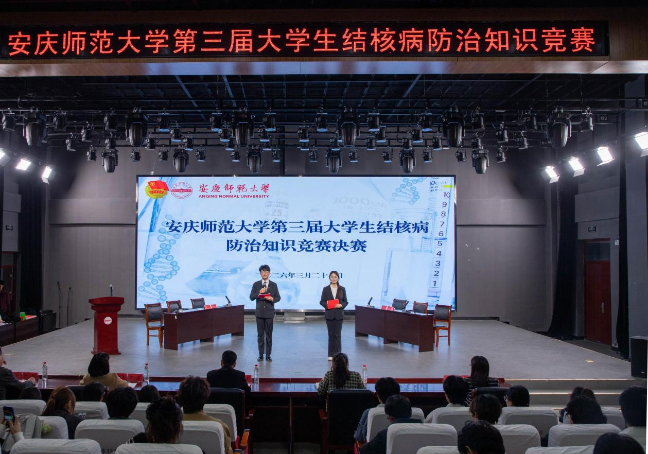 3月27日,校医院、校团委联合主办的安庆师范大学第三届大学生结核病防治知识竞赛决赛在传媒学院报告厅顺利举行。本次竞赛面向青年学子广泛普及结核病防治知识,提升大学生对结核病的认知水平与自我防护能力,进一步推动校园传染病防控工作,营造健康、安全的校园环境。经初赛选拔与择优推荐,来自全校8个学院的参赛队伍入围本次决赛。